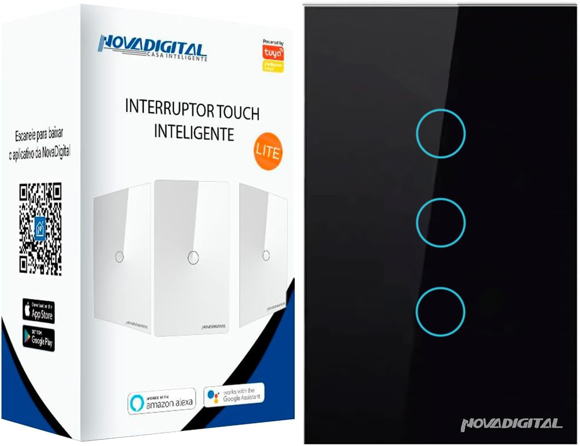 - 7 Interruptor Smart Wifi Inteligente Touch Nova Digital 3 botões Lite BR 4×2 Preto